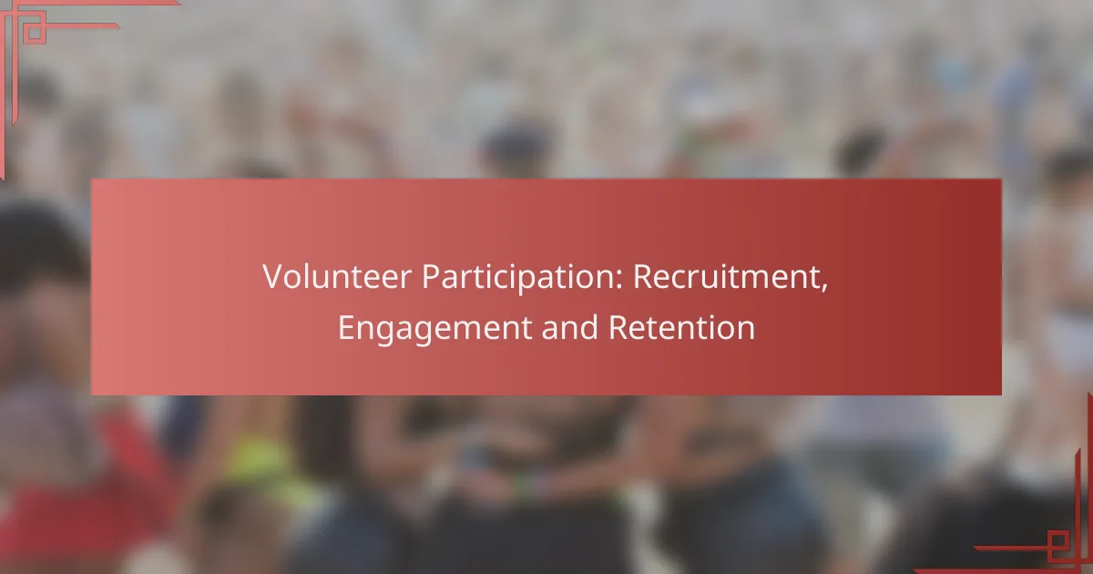 Volunteer participation is essential for organizations aiming to make a meaningful impact in their communities. By employing strategic recruitment methods and effective engagement techniques, organizations can attract and retain a diverse group of volunteers. Fostering a supportive environment that emphasizes recognition and personal growth is key to maintaining volunteer commitment and satisfaction.